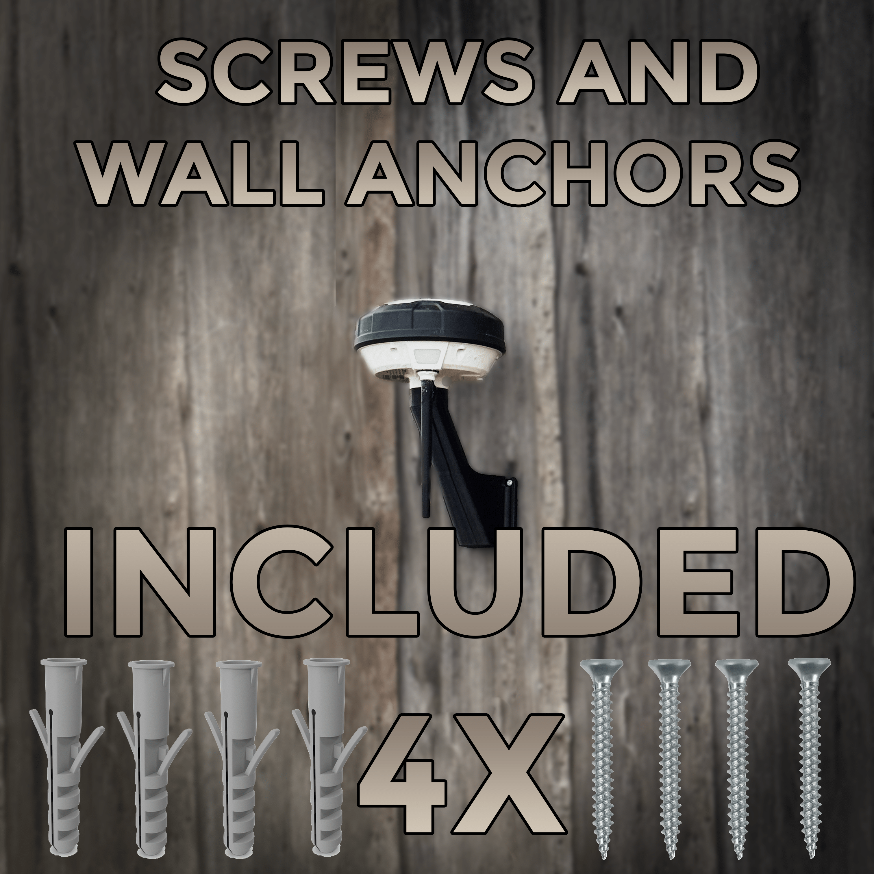 Each package includes 4 screws and wall plugs for quick and secure installation on any vertical surface — walls, fences, or wooden structures.