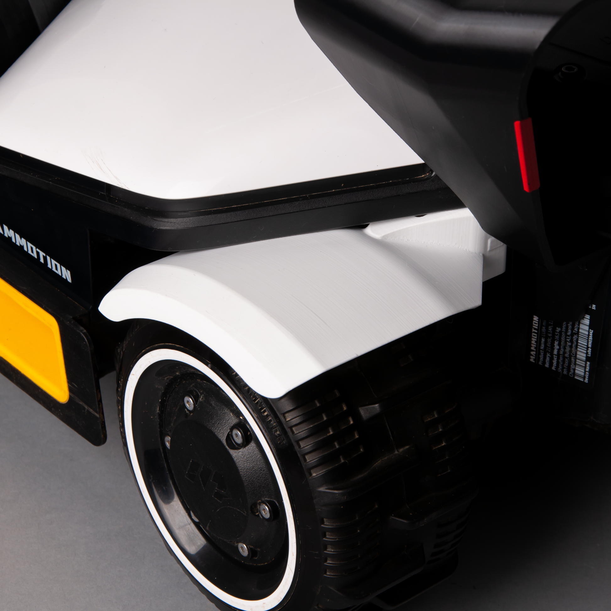 These rear fenders are specifically designed for the Luba Mini / Luba Mini 2, protecting the area behind the rear wheels from mud, grass, and dirt that builds up during mowing.