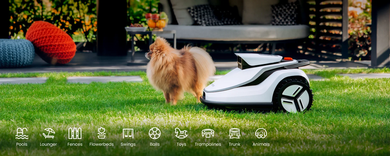 - The mower analyzes the environment with a 3D camera and identifies lawn edges