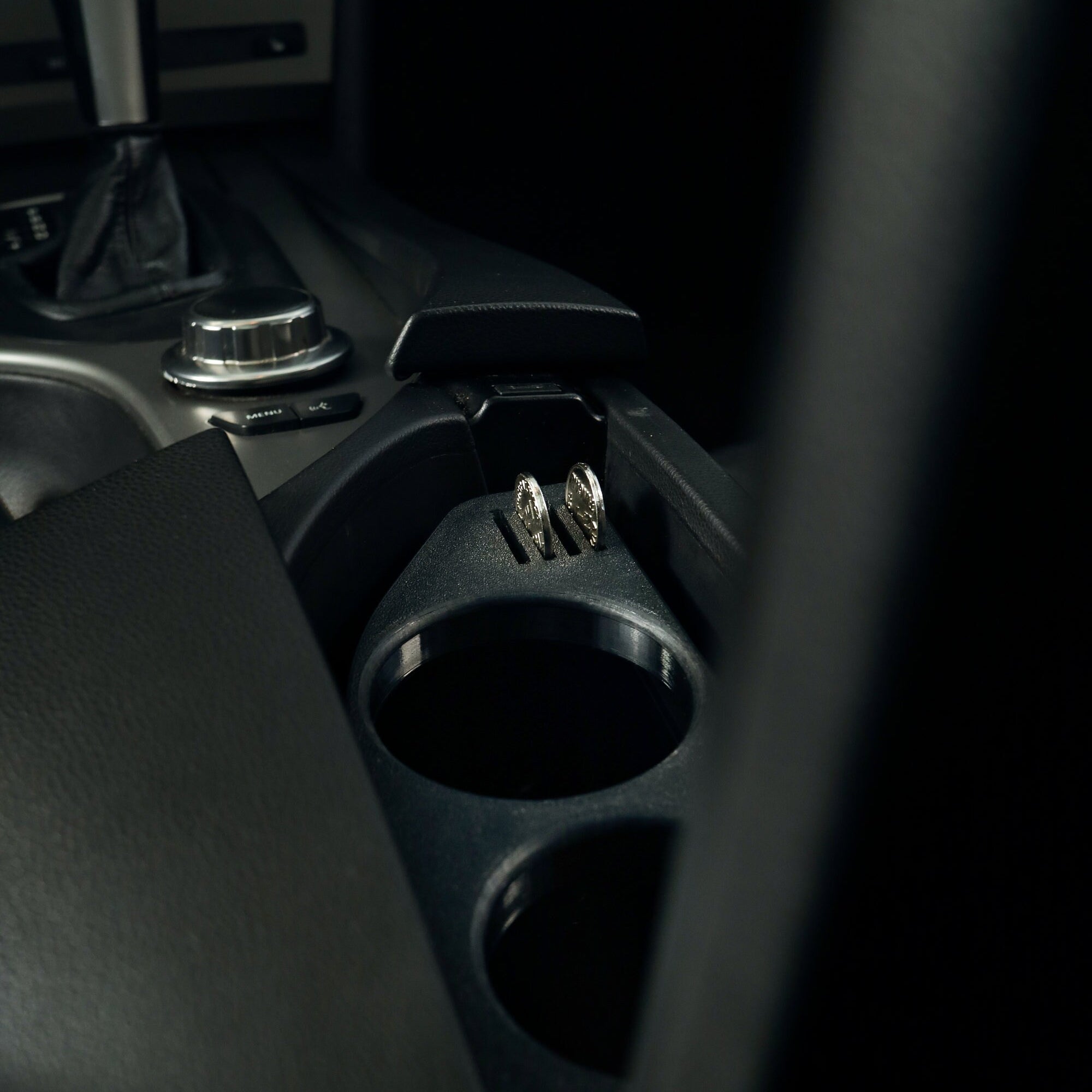 The cup holder is designed to fit directly into the armrest once the original phone cradle is removed.